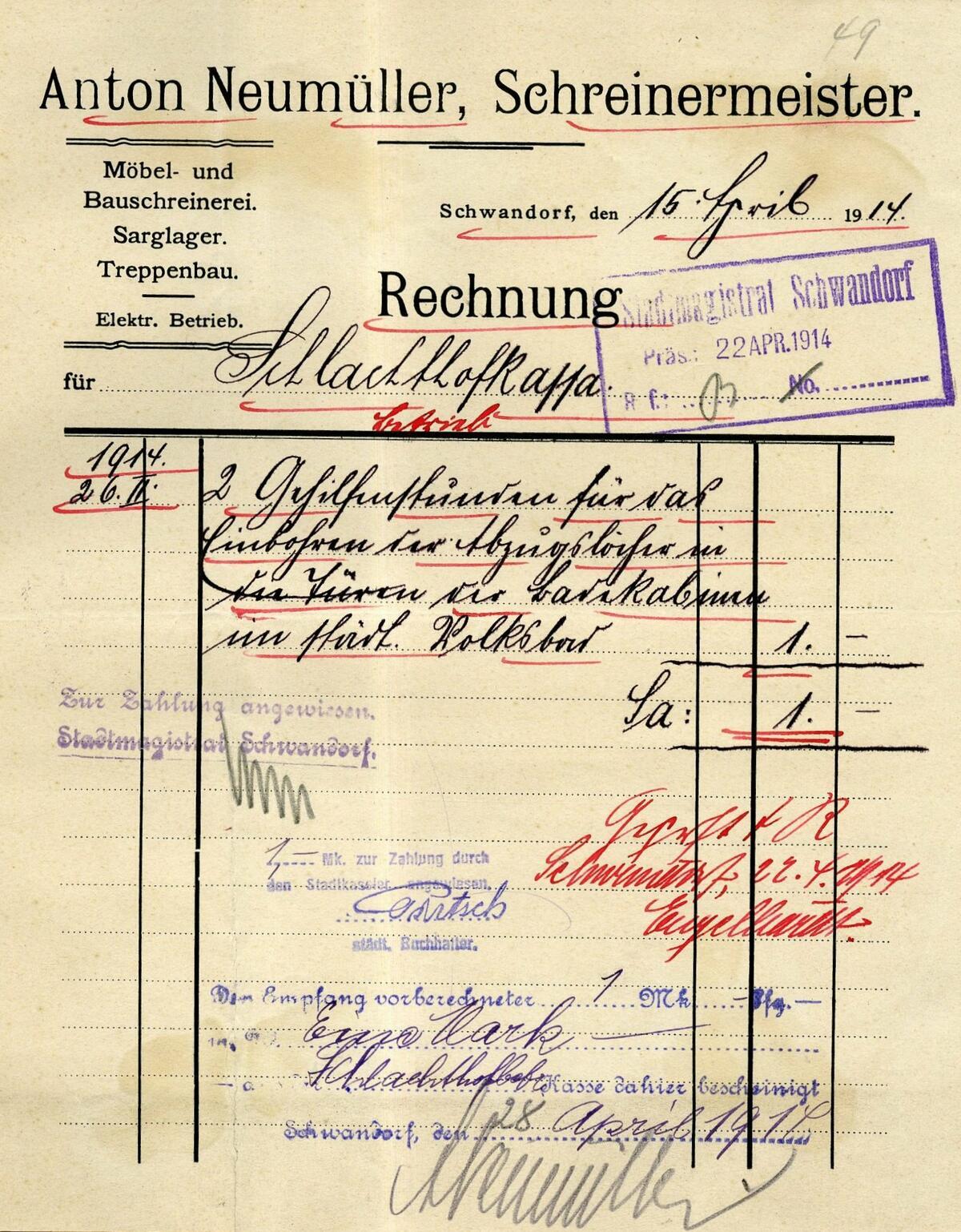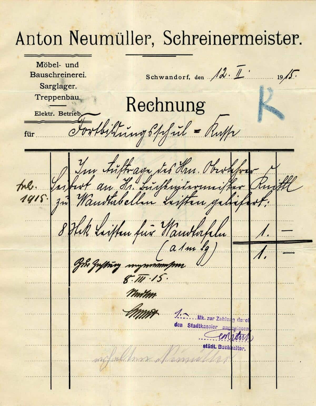 Beispiel: Acht Leisten für die Wandtafeln kosteten 1915 eine Mark.