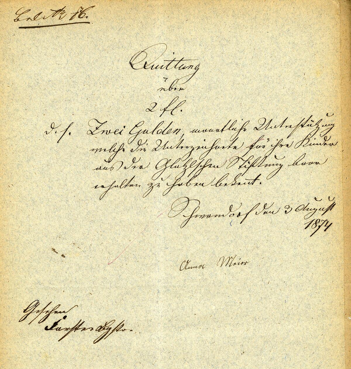 Beispiel: Die Hebamme Theresia List erhält einen Gulden Jahresgehalt aus der Seel- und Almosenstiftung.