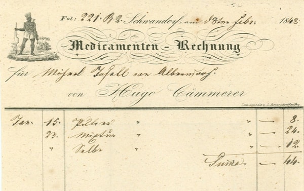 Beispiel: Medikamentenrechnung des Michael Josell von Alberndorf, 1848