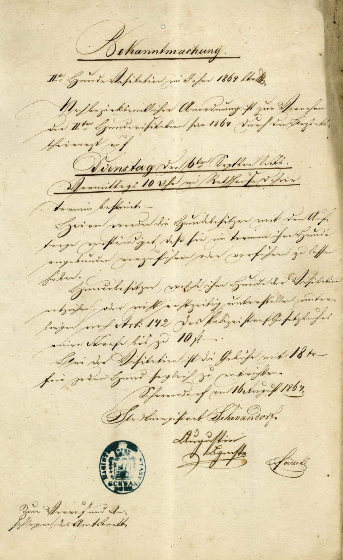 Akten über Hundevisitationen und die Behandlung des magistratischen Taxwesens liegen hier für die Forschung bereit.