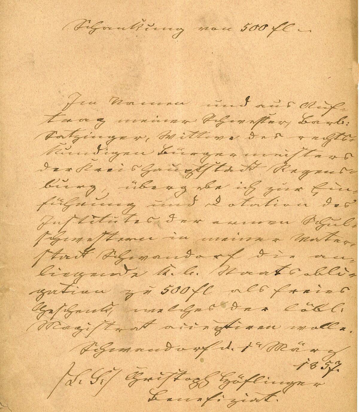 Beispiel: Geldaufschlag für die unmittelbare Benützung der Armenhäuser und zwar Seelenhaus und Venusanwesen.